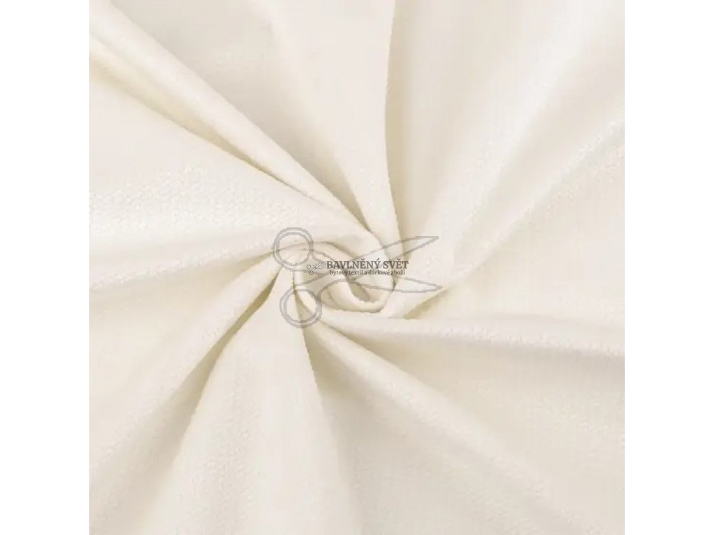Tento strukturovaný smetanový velvet představuje naprostou špičku pro každého, kdo hledá materiál kombinující nadčasovou eleganci s neuvěřitelnou jemností. Smetanová barva působí velmi hřejivě a harmonicky, což z ní dělá perfektní základ pro výbavičky do postýlek, kde navozuje pocit klidu a luxusu. Látka má krátký, hustě tkaný vlas, který vytváří decentní plastický efekt a je mimořádně příjemný na dotek.