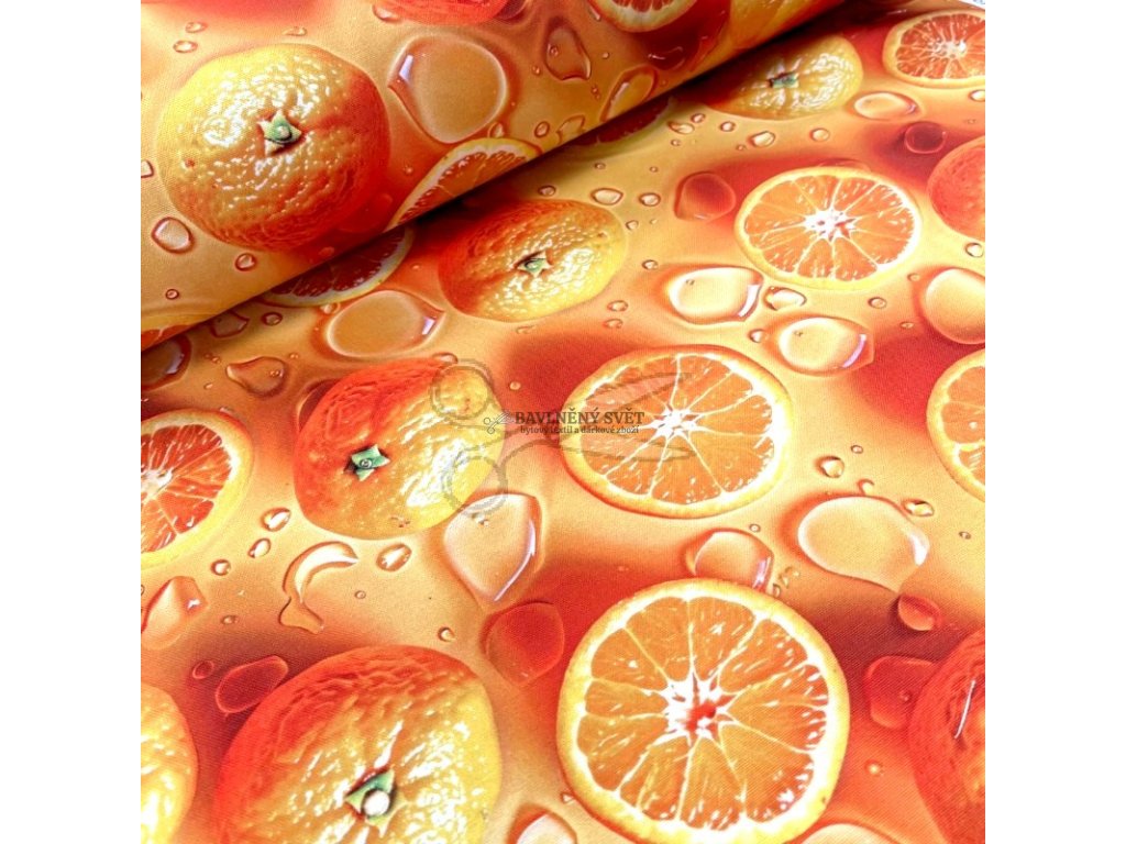 Hledáte materiál, který dodá vašemu posezení pořádnou dávku optimismu a zároveň vám ušetří práci? Naše dekorační látka s motivem pomerančů a kapek vody je stvořena pro milovníky svěžího stylu a praktických řešení. Díky vodoodpudivé povrchové úpravě se rozlitý nápoj nebo káva okamžitě nevsákne do vláken, ale vytvoří na povrchu drobné kapičky. Tyto „perličky“ vody pak snadno setřete utěrkou, aniž byste museli ubrus ihned prát, přičemž tato ochrana se může částečně snížit až po cca 6 praních.
