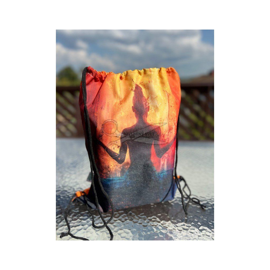 Vaše cesta za jógou začíná už při balení věcí. Zapomeňte na nepraktické tašky a dopřejte si lehkost, kterou nabízí tento ručně šitý vak. Design s motivem meditující postavy v záři žlutých a oranžových tónů přesně odráží klid a harmonii, kterou při cvičení hledáte.