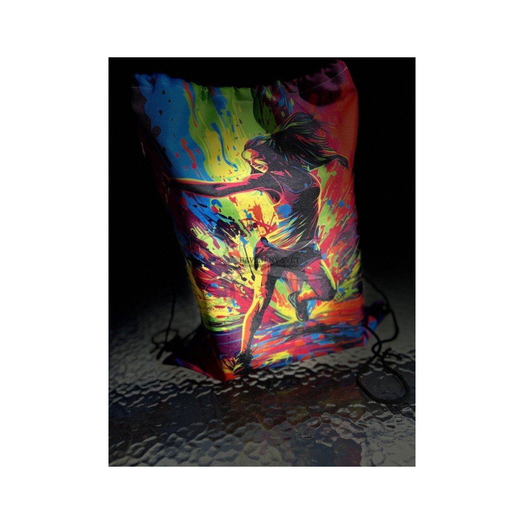 - Komfortní nošení: Pevné černé šňůrky slouží zároveň jako popruhy na záda a zajišťují rychlé uzavření vaku jedním zatáhnutím.
