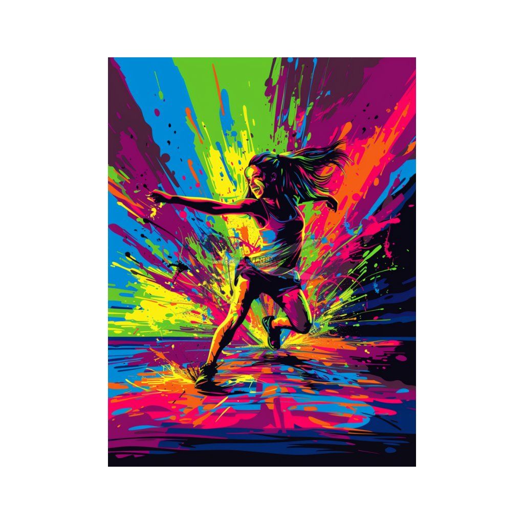 - Provedení: Přední strana s uměleckou grafikou postavy v pohybu, zadní strana jednobarevná fialová.