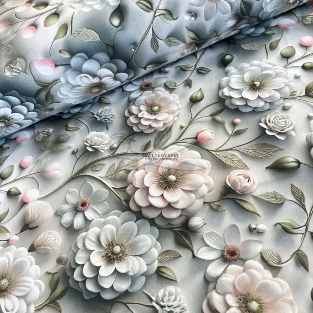 Zbytkárna - Bavlněná látka 5D KYTICE č. 2 šíře 240 cm 2,1 metru