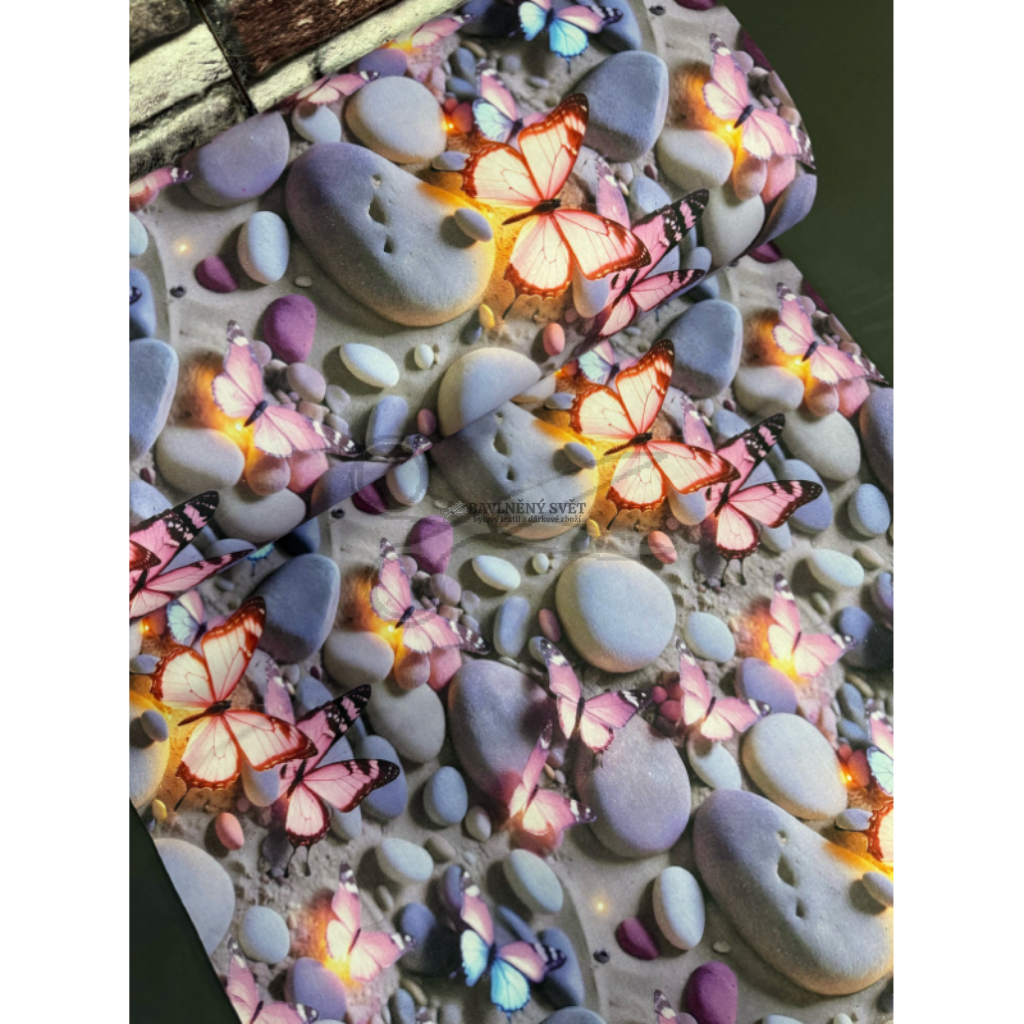 Zbytkárna - Bavlněná látka 5D MOTÝL s KAMENY šíře 240 cm 1,9 metru
