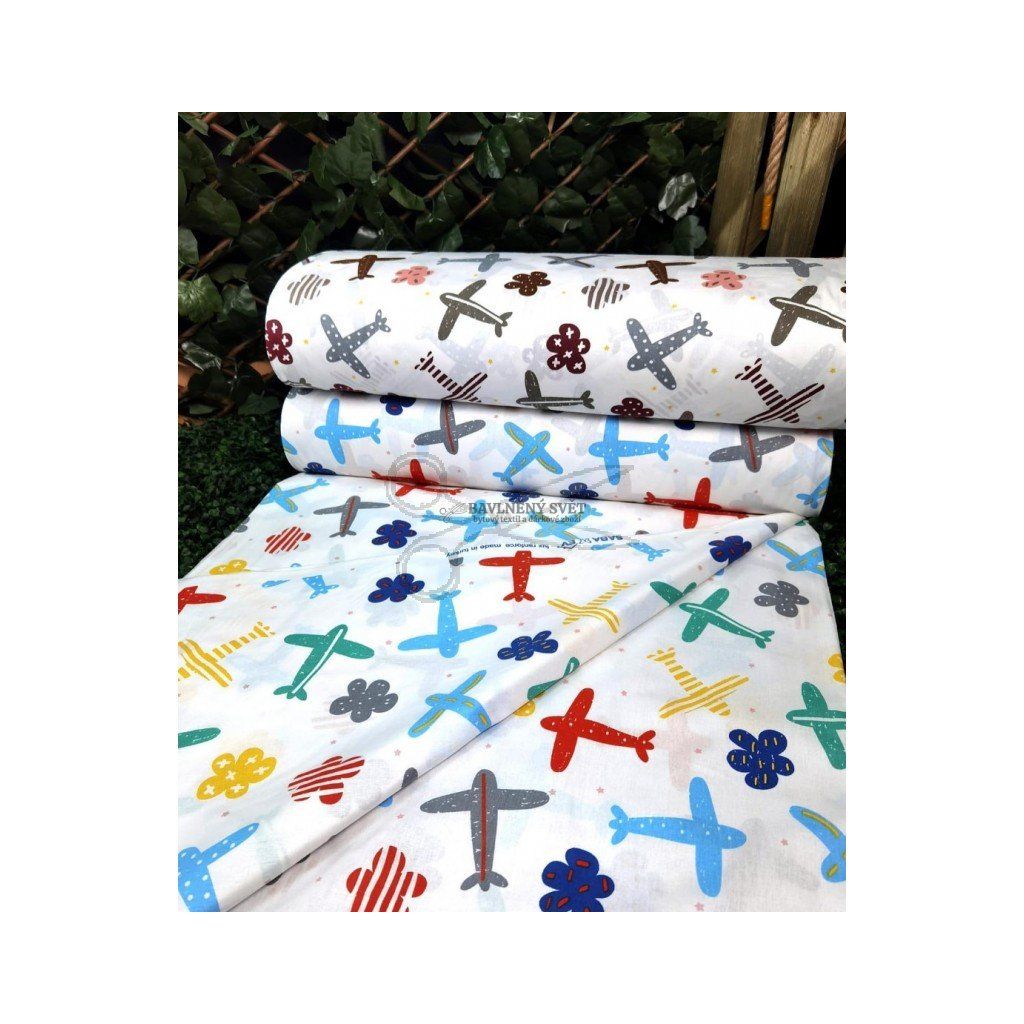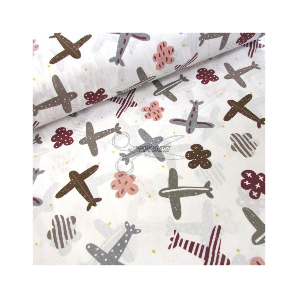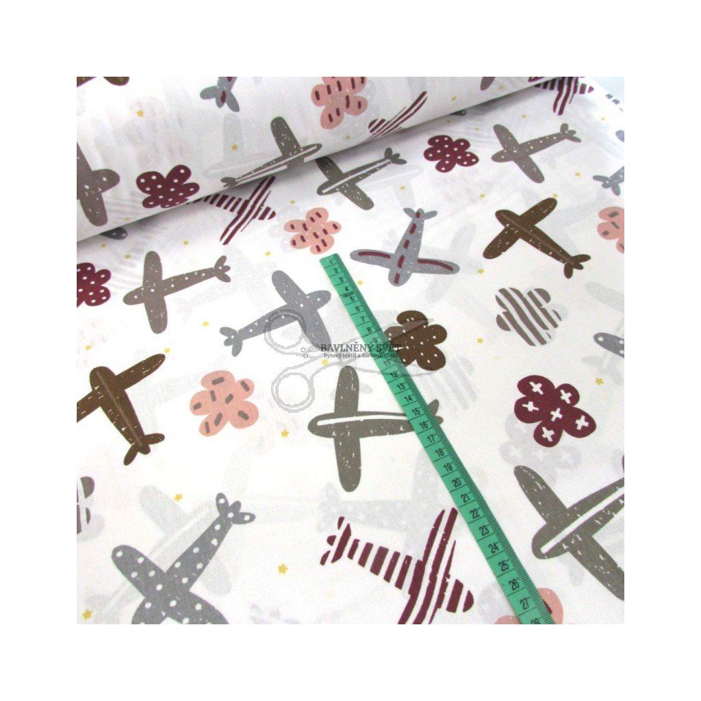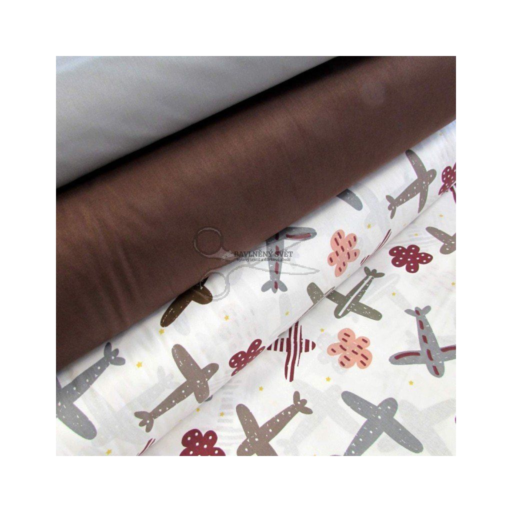 Zbytkárna - Bavlněná látka LETADLA hnědá šíře 240 cm 0,5 metru