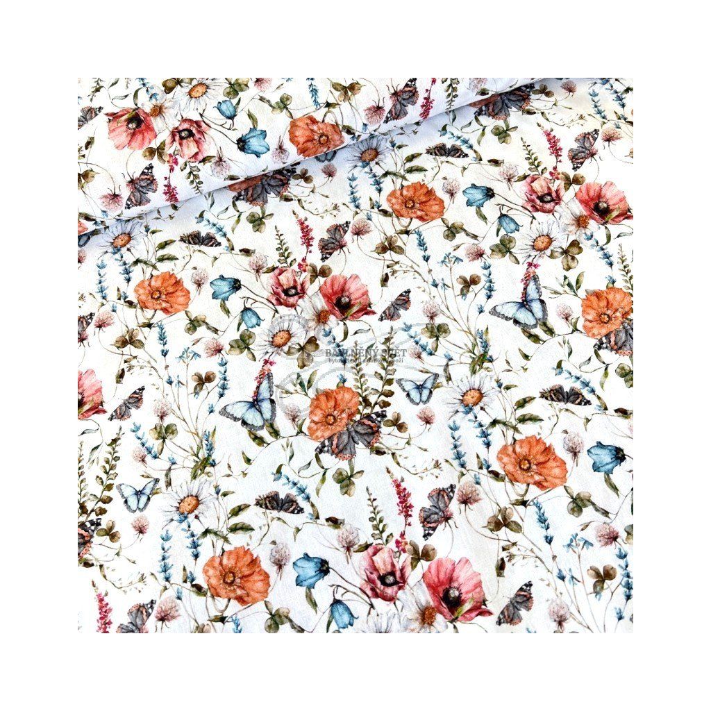 Zbytkárna - Bavlněná látka MÁKY a MOTÝL šíře 150 cm 1,1 metru