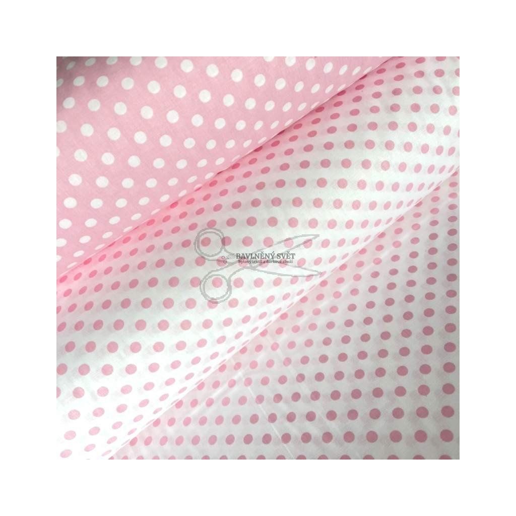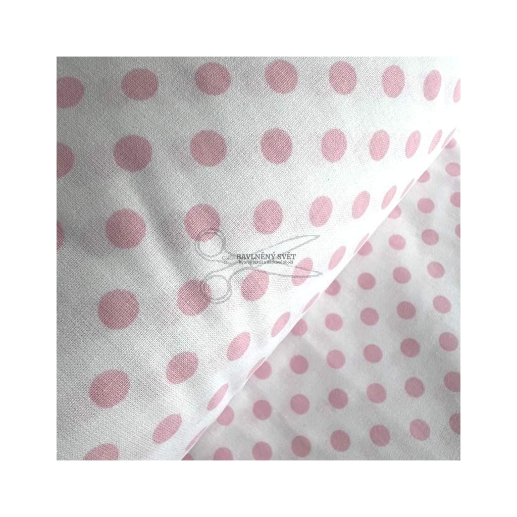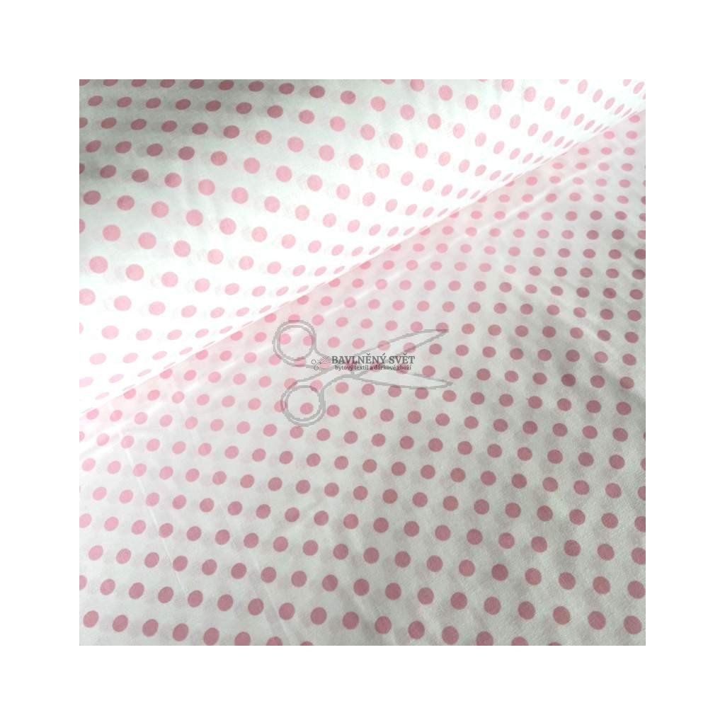 Zbytkárna - Bavlněná látka PUNTÍK 0,6cm RŮŽOVÝ na BÍLÉM šíře 240 cm 0,5 metru