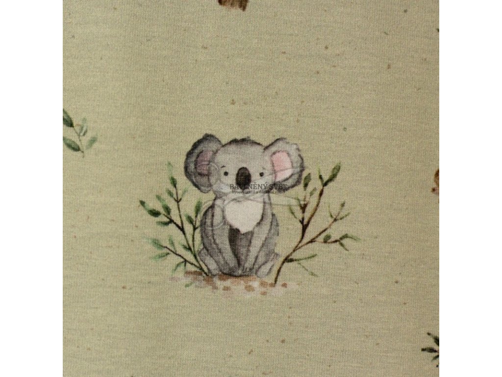 Zbytkárna - Bavlněný úplet KOALA na ZELENÉM šíře 160 cm 1,2 metru