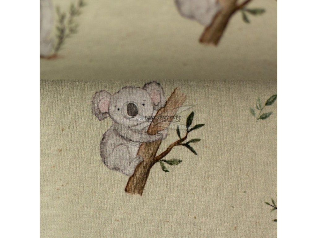 Tento bavlněný úplet s příměsí elastanu vyniká svou jemností a decentním designem, který je jako stvořený pro ty nejmenší. Motiv koal odpočívajících na větvích v doprovodu drobných lístků na tlumeném pozadí působí velmi harmonicky a hodí se pro chlapce i holčičky. Materiál je pružný a tvarově stálý, což zaručuje, že rostoucí tepláčky, čepičky nebo nákrčníky budou perfektně sedět i po mnoha vypráních.