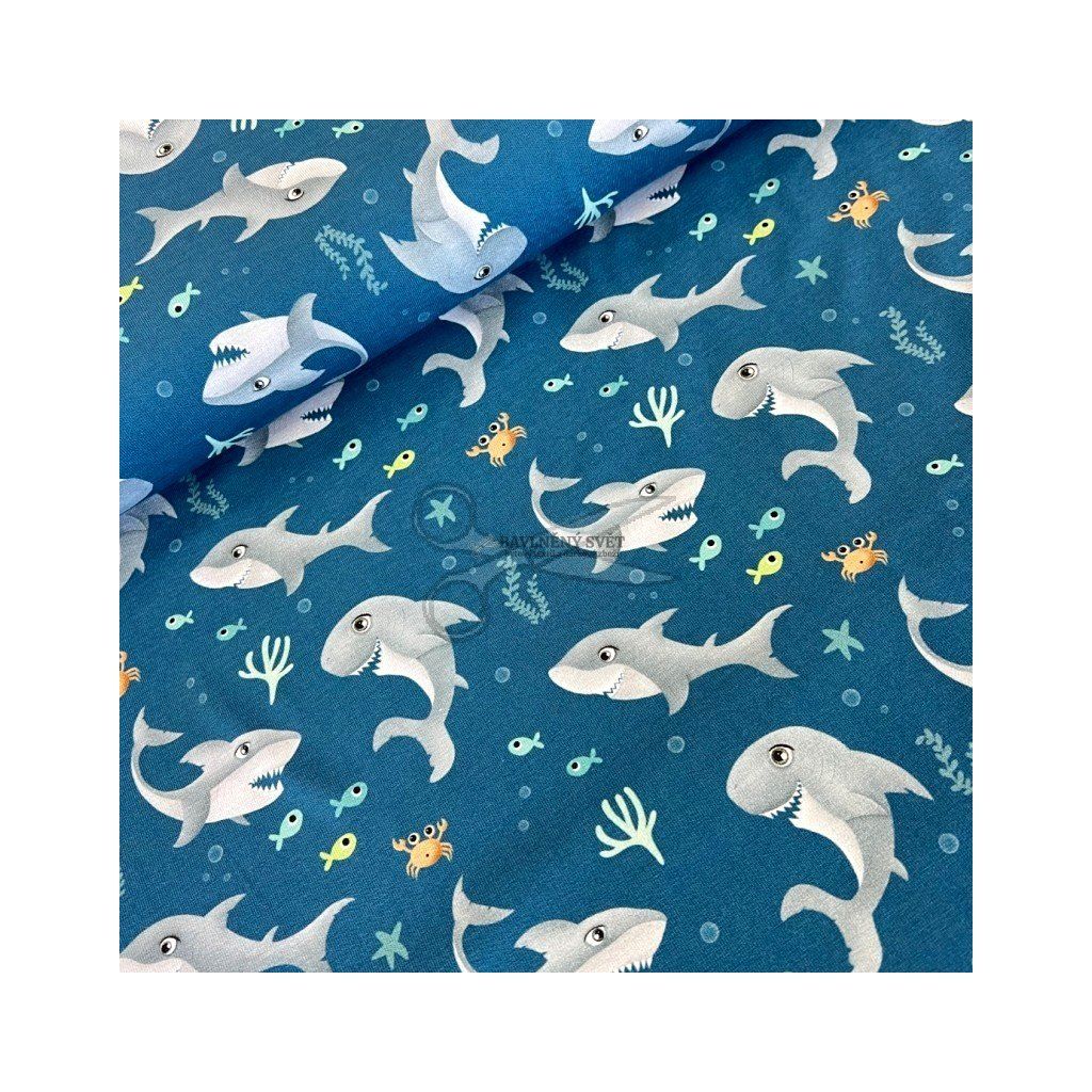 Zbytkárna - Bavlněný úplet ŽRALOCI šíře 150 cm 1,2 metru
