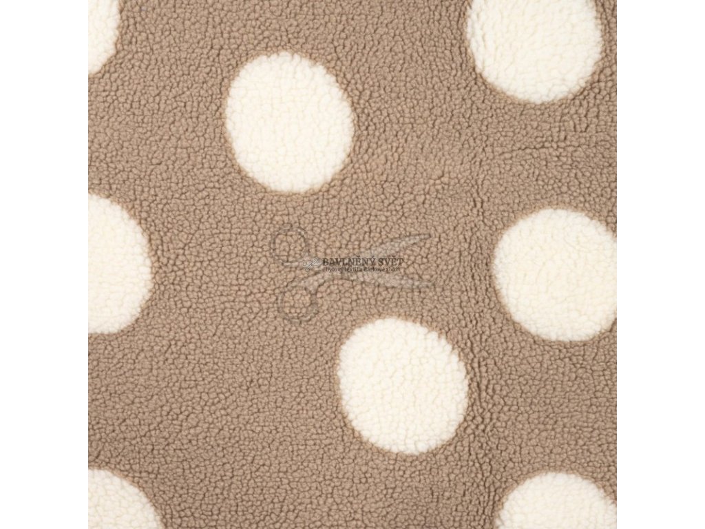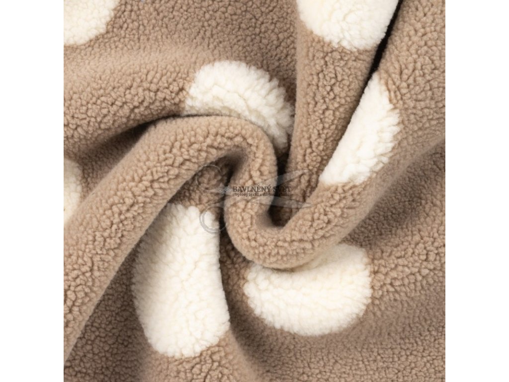Hledáte materiál, který tvoří dokonalou kombinaci hravého stylu a funkčnosti? Tato béžová Teddy látka (beránek) s velkými bílými puntíky je stvořená pro ty, kteří milují výrazné doplňky. Materiál má charakteristický huňatý líc, zatímco jeho pevnější rubová strana zajišťuje, že výrobky skvěle drží tvar a neprovívají. Vzhledem k větší velikosti puntíků tato látka nejlépe vynikne na větších plochách. Je naprosto perfektní pro šití válecích dek, luxusních přehozů přes postel nebo originálních interiérových polštářů. Maminky ji ocení jako teplou vložku do fusaků nebo zavinovaček, kde drsnější rub zůstane skrytý a dítě bude hýčkáno měkkým "obláčkovým" lícem.