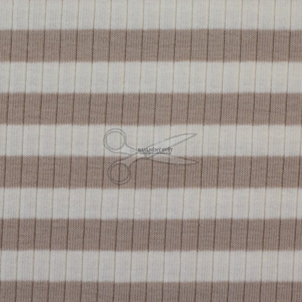 Žebrovaný úplet PRUH béžový šíře 140 cm