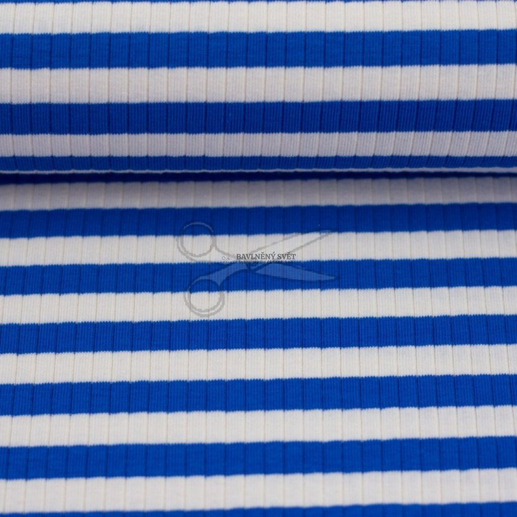 Žebrovaný úplet PRUH modrý šíře 140 cm