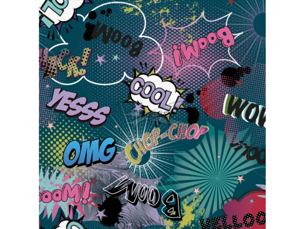 Zimní PRUŽNÝ softshell KOMIKS petrolejový šíře 140 cm